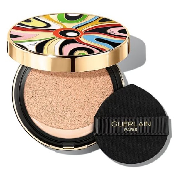 Camille Miceli ผู้อำนวยการฝ่ายศิลป์ของ Pucci และ Violette ผู้อำนวยการฝ่ายสร้างสรรค์เมคอัพของ Guerlain ได้ผนวกรวมทักษะความชำนาญเข้าด้วยกันเพื่อตกแต่ง Parure Gold Cushion 00N ซึ่งเป็นผลิตภัณฑ์ยอดนิยมในลวดลาย "Marmo" อันเป็นเอกลักษณ์ของ Pucci การตีความอันหรูหราจากระลอกคลื่นของดวงอาทิตย์ในทะเลเมดิเตอร์เรเนียน