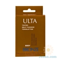When smoothed over face and body, Bronze Body Tinted Self-Tanning Towelettes by Ulta develop a safe and natural-looking tan. Pre-moistened towelettes feature a non-streaking formula for a healthy glow.