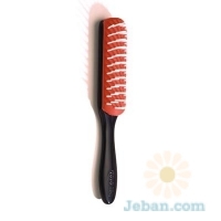 Medium grooming brush with 7 rows of nylon pins. Widely-spaced pins set into an anti-static rubber pad produces volume, movement and lift during blow-drying for a softer, fuller look. Effective for detangling medium length hair.
