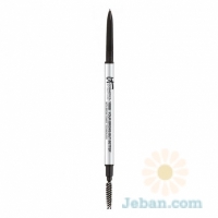 Formulated with the same IT Cosmetics® award-winning Brow Power® Universal formula, this pencil is infused with brow-enhancing and conditioning ingredients including Biotin, Peptides, Saw Palmetto, Nettle Extract, Green Tea, Lecithin, Vitamins A, C, E, Grape Seed and Panthenol. The super skinny tip draws the tiniest of lines, allowing you to easily mimic the look of natural brow hairs, fill in your natural brow, and even cover gray. The spooley end brush gives a natural polished look. Designed with an ultra-fine tip to easily mimic the look of real brow hairs!